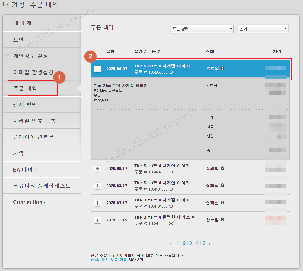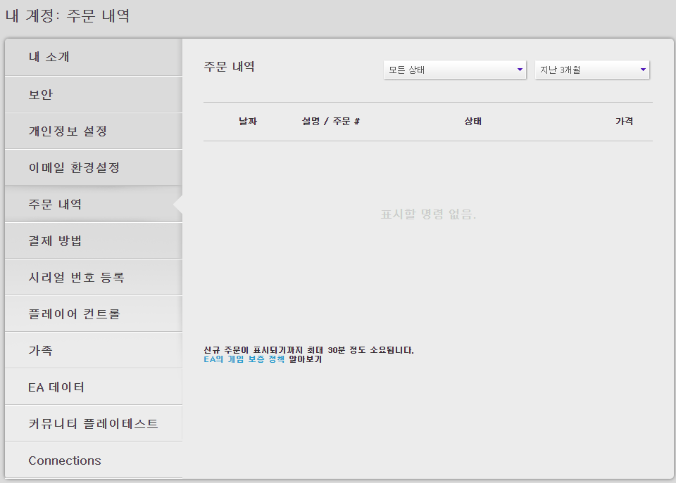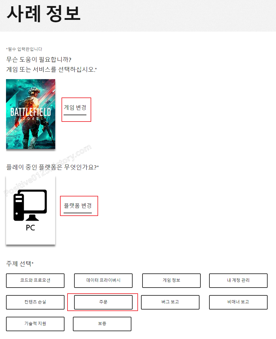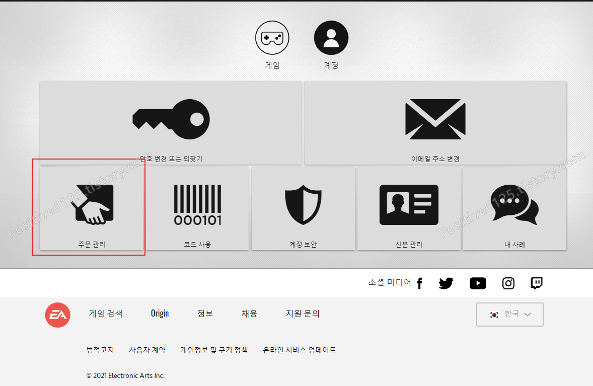 1. EA 도움 페이지를 들어가면 됩니다. 주소는 https://help.ea.com/kr이며 아래의 주문관리를 누르면 주문내역으로 청구하는 방법과 동일한 창이 활성화됩니다.