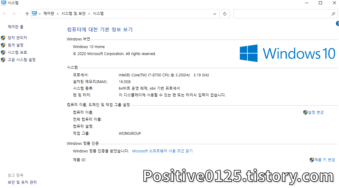 ■ 윈도우 키+PauseBreak = 시스템 등록정보 보기