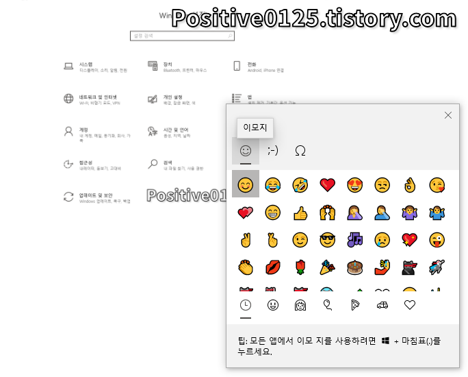 ■ 윈도우키+.(마침표) = 이모티콘창 열기
