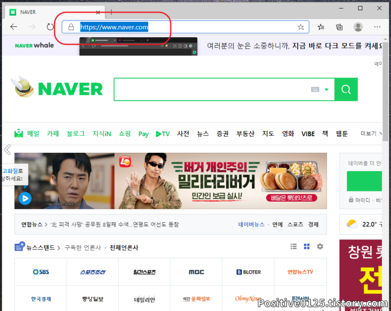 - 이때, 자신이 지정한 기본 페이지가 뜨게 됩니다.