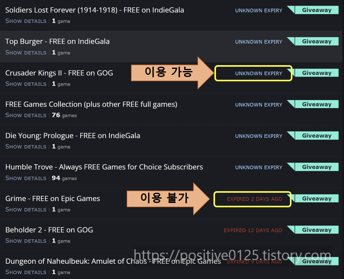 이용 가능한 것들도 있고 이미 기간이 지나버려서 이용이 불가한 것 게임 목록들도 보이는 군요.