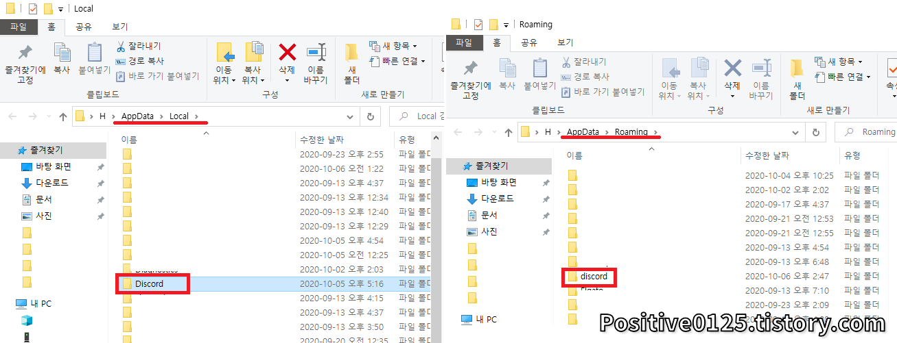 각각의 탐색기창에서 「Discord」 폴더를 가차 없이 삭제해줍시다!