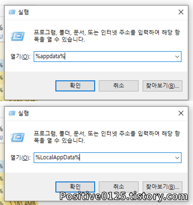 그리고 「 %appdata% 」 와 「 %LocalAppData% 」 이 두 가지를 입력하여 2개의 탐색기창을 열어 둡니다.